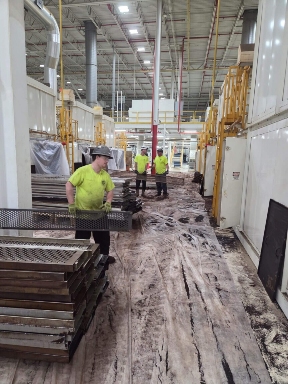 FCS Industrial Solutions production oven cleaning services provide industrial manufacturers a faster way to remove process buildup and sanitize industrial ovens for both efficiency and product quality. Our process is mechanical and uses physics and a approved/proven cleaning technology.